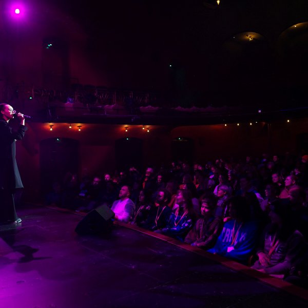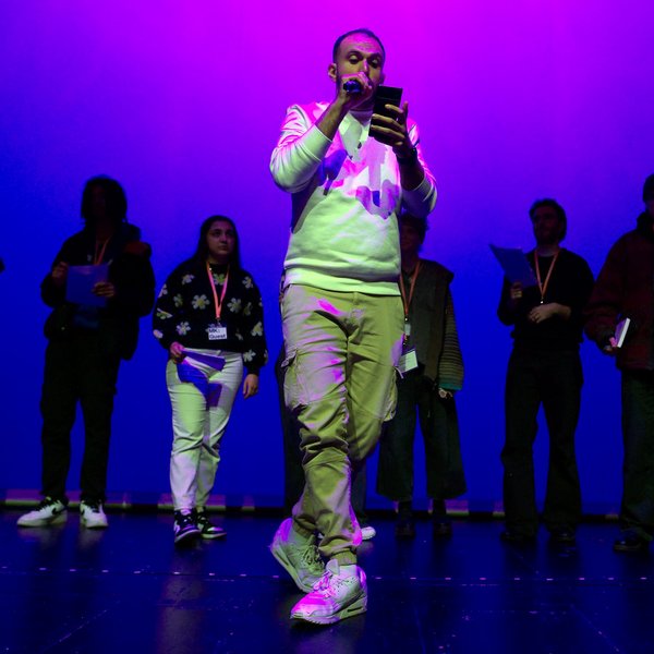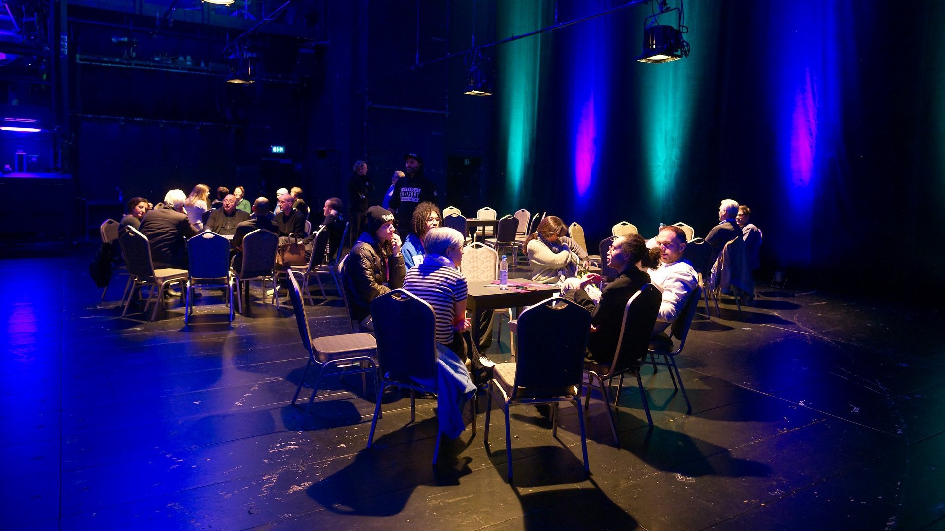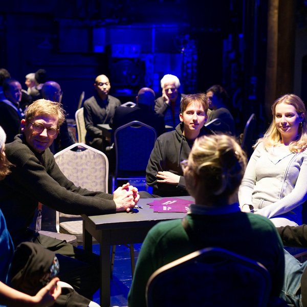 Die sich anschließende Fishbowl-Diskussion wurde moderiert von Achim „Waseem“ Seeger. Als DJ, Musiker und Aktivist verbindet er die Themen Freiheit und Demokratie mit der Hip-Hop-Kultur meist außerhalb traditioneller Theaterorte. An diesem Abend wurde das Thema Freiheit verbunden mit den brennenden Fragen nach gesellschaftlicher Vielfalt. Wie wenig selbstverständlich diese nach wie vor ist, wurde während der Fishbowl-Diskussion deutlich, als auf der Bühne die Beteiligten mit weißer Hautfarbe teilweise die Minderheit bildeten.
